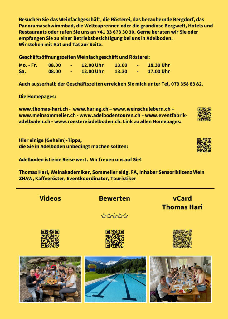 Mein Name ist Thomas Hari, Adelbodner, Kaffeeröster, Weinprofi und Eventorganisator.